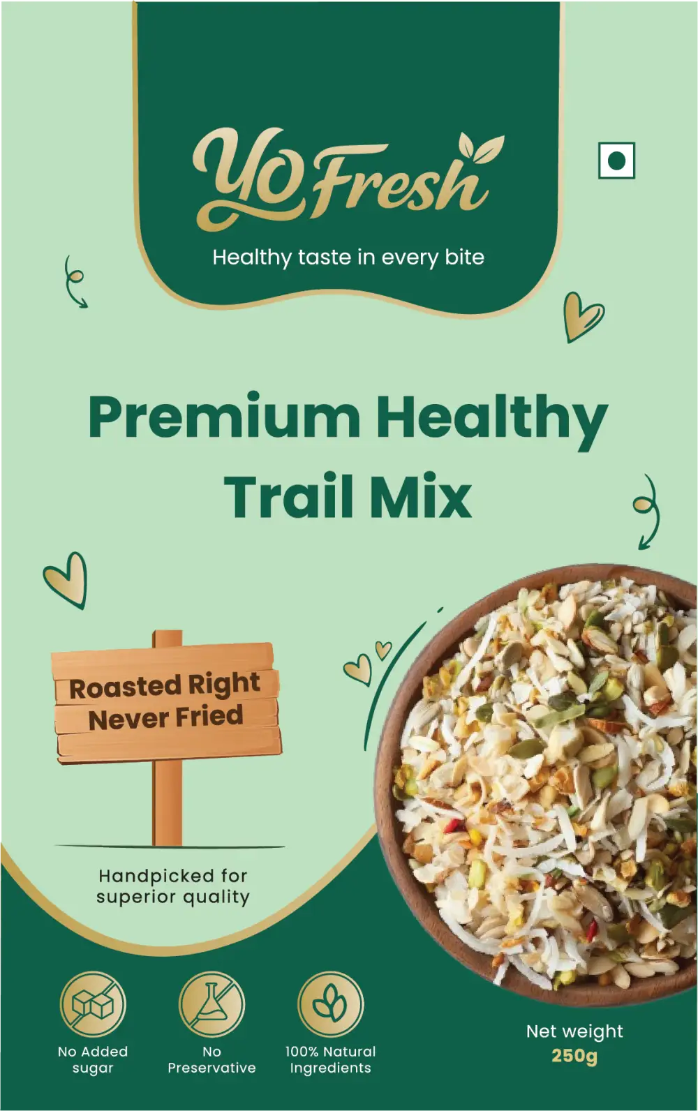 Premium Healthy Trail Mix — roasted, never fried. No added sugar, no preservatives.